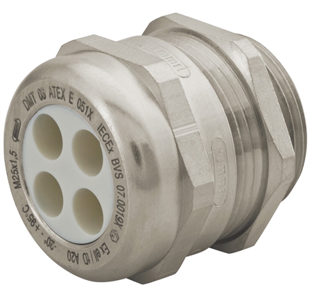 Sealcon CD09N2-MX nickel plated brass cord grip for hazardous locations. 3/8" NPT Thread. 2 hole .12" (3 mm) insert. Sold Individually. Hummel 1.687.3801.70