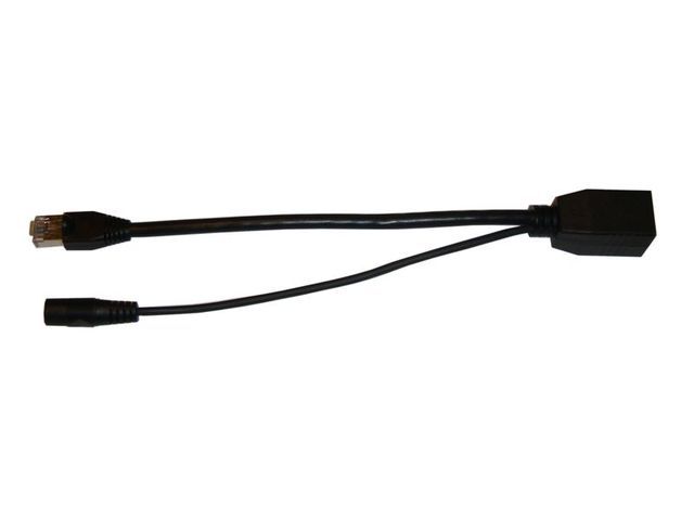 Passive Y POE Injector. Provides POE Power on Both RJ45 connectors. 165mm Shielded Cable Length, Shrouded DC Connector (5.5/2.1mm), Black Color. Shielded Connectors and Cable, 10/100