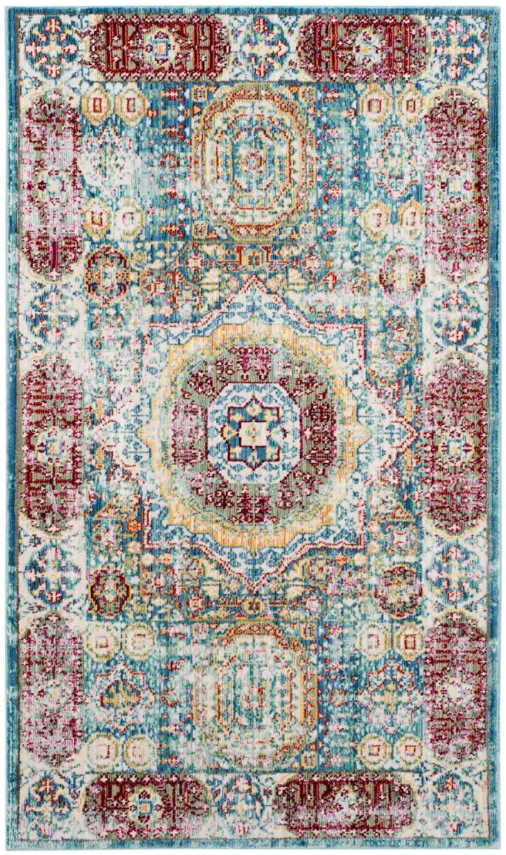 Safavieh VAL111M-3 Valencia Small Rectangle Area Rug, Blue & Multi - 3 x 5 ft.