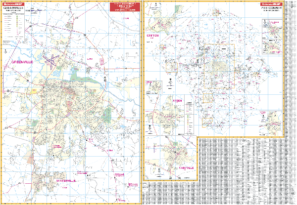 Universal Map 762517123 Greenville NC Wall Map Railed