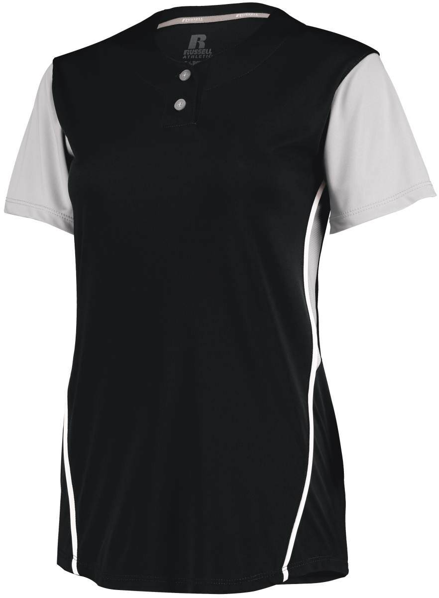Russell 7R6X2X.B9A.L Ladies Performance Two-Button Color Block Jersey, Black & Baseball Gray - Large