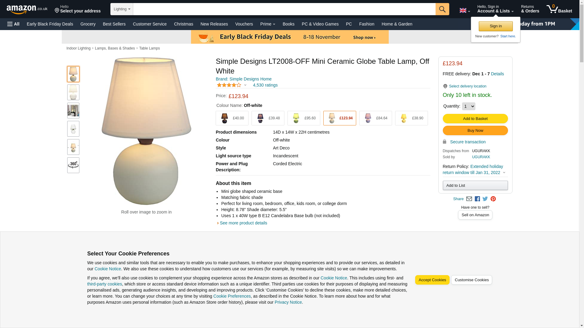 - Mini globe shaped ceramic base with matching fabric shade