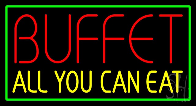 Sign Store N100-3131 Buffet All You Can Eat With Green Border Neon Sign, 37 x 20 x 3 In.
