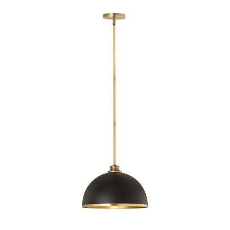 Landry 1 Light Pendant, Matte Black & Rubbed Brass