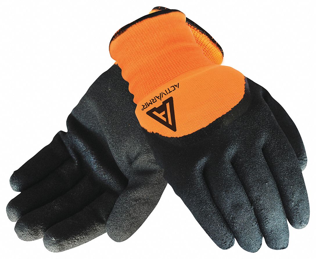 CUT-RESISTANT GLOVES, HI-VIS, ACTIVARMR/WINTER/3/4 DIPPED, SIZE 10/XL, ORANGE, SANDY NITRILE