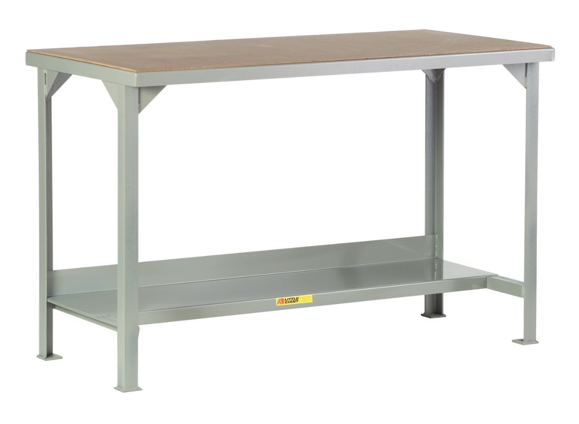 Little Giant WSH2-2448-36 Welded Steel Workbench, Hardboard over Steel Top, 1 Half-Shelf, 5000 lb. Load Capacity, 36" x 48" x 24", Gray