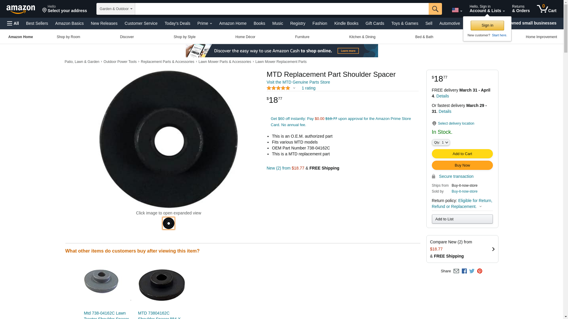 - Includes (1) Mtd 738-04162C Lawn Tractor Shoulder Spacer Genuine Original Equipment Manufacturer (OEM) Part