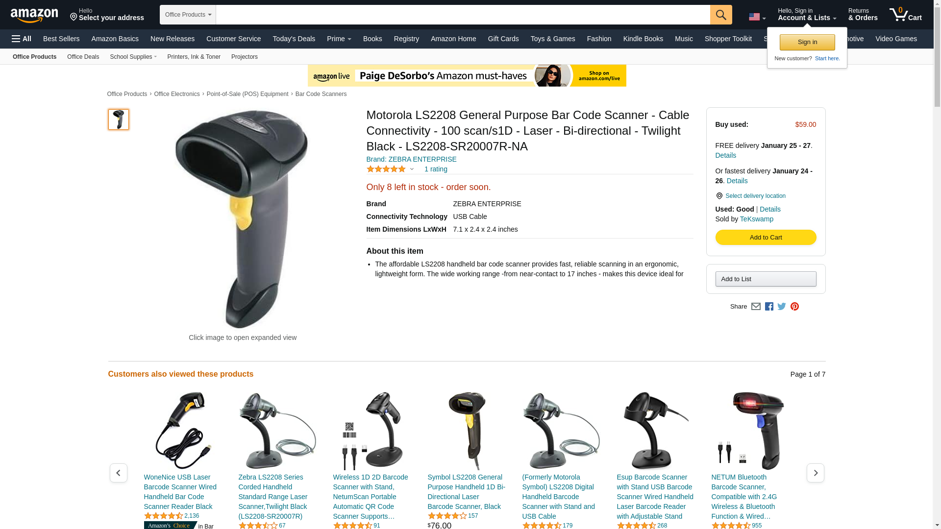 | LS2208-SR20007R-NA | 1 | 1 | 1 @ $170.50 | ||