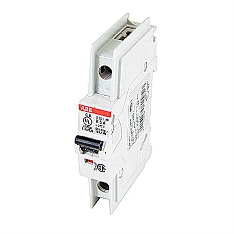 ABB S200UP-K Low voltage 1-pole miniature circuit breaker has 480Y/277 VAC voltage rating and 5 A amp rating with a interrupt rating of 10 kA. Brand Name|ABB#MFR Part Number|S201UP-K5#UPC|662019169644#UNSPSC|39121603#Item|Miniature Circuit Breaker#Type|Low Voltage#Series|S200UP-K#Voltage Rating|480Y/277 VAC#Amperage Rating|5 A#Frequency Rating|50/60 Hz#Interrupt Rating|10 kA#Trip Type|Thermal/Magnetic#Trip Range|8 - 12 A Magnetic and 1.05 - 1.2 A Thermal#Number of Poles|1#Actuator Type|Toggle#Wire Size|18 - 8 AWG Busbar, 18 - 4 AWG Conductor#Terminal Type|Screw#Enclosure Type|IP20#Mounting Type|DIN-Rail#Temperature Rating|-25 to 55 deg C#Dimensions|100 mm Height x 17.5 mm Width x 71 mm Depth#Material|Insulation Group II, RAL 7035#Standard/Approvals|IEC/EN 60947-2, UL 489, CSA 22.2 No 5#Application|Equipment Protection in Commercial Appliances, Protection of Control Circuits Against Overcurrent Faults, Computer Equipment and Other Computer Peripheral Devices