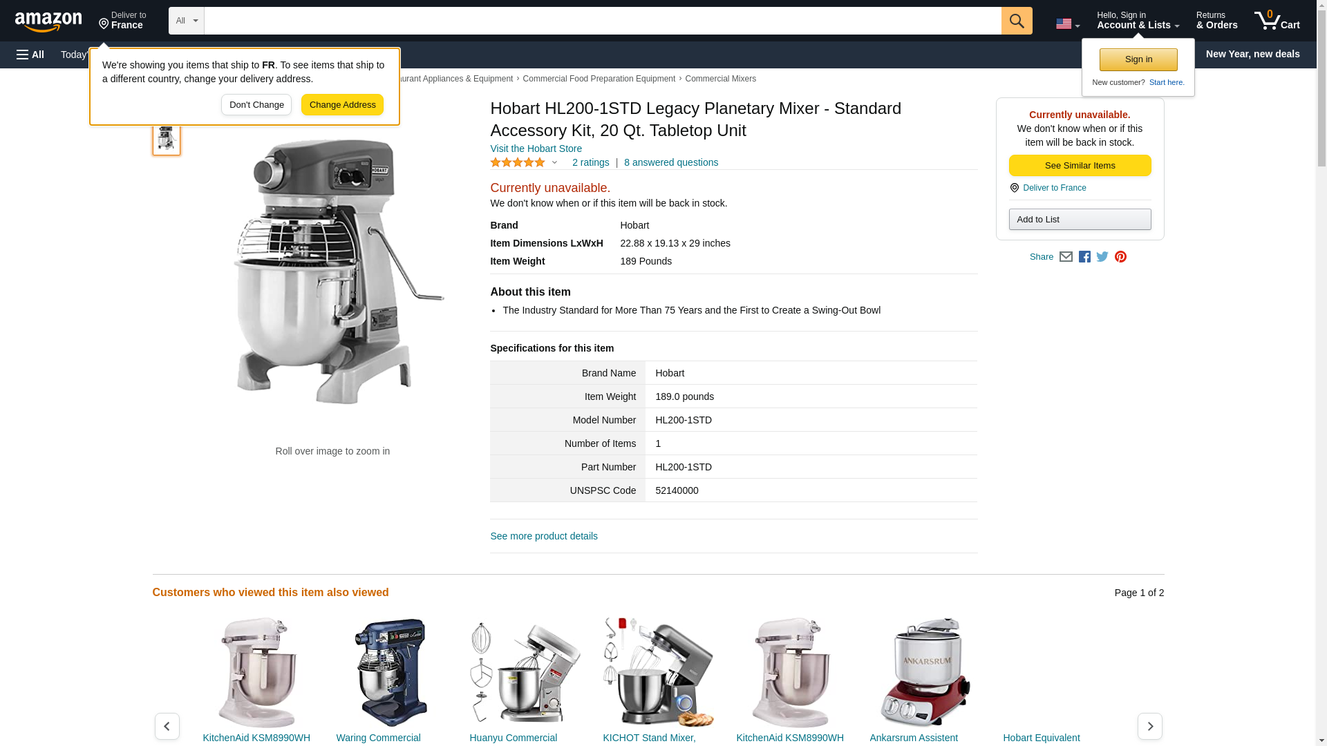 | Culinary Depot | HOB-HL200-1STD | 1 | 1 | ||