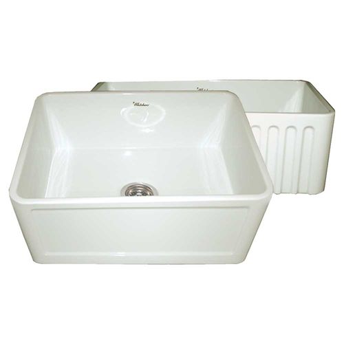 WHITEHAUS WHFLCON2418-BISCUIT REVERSIBLE SERIES 24 INCH FIRECLAY SINK W/ CONCAVE FRONT APRON / FLUTED FRONT APRON,...