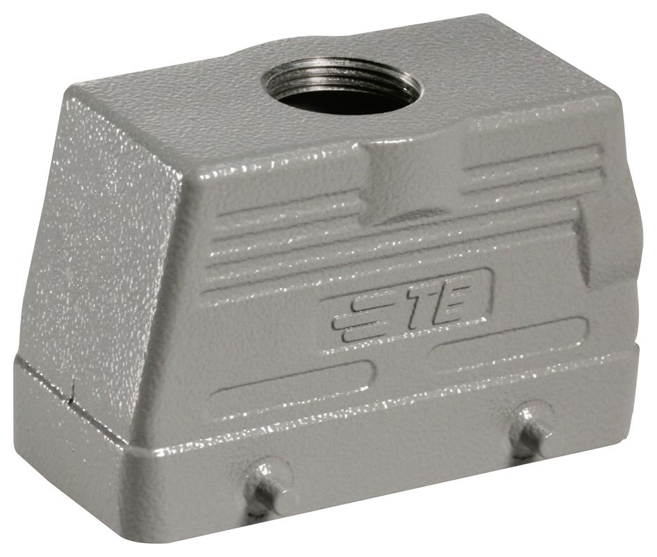 | Feature | <b>Price For:</b> Each<b>Order Unit:</b> Each <b>Product Range</b>: HDC Series <b>Cable Exit Angle</b>: 180\xb0 <b>Rectangular Shell Size</b>: 16B <b>For Use With</b>: TE HB Series Size 16B Heavy Duty Connectors <b>Connector Body Material</b>: Aluminium Alloy Body <b>SVHC</b>: To Be Advised |