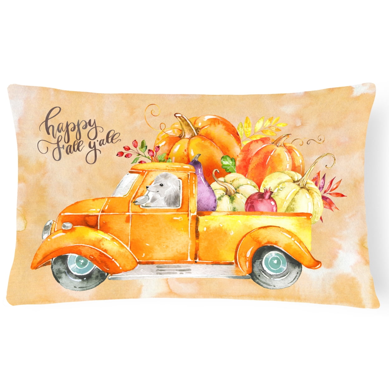 Carolines Treasures CK2678PW1216 Fall Harvest White Poodle Canvas Fabric Decorative Pillow