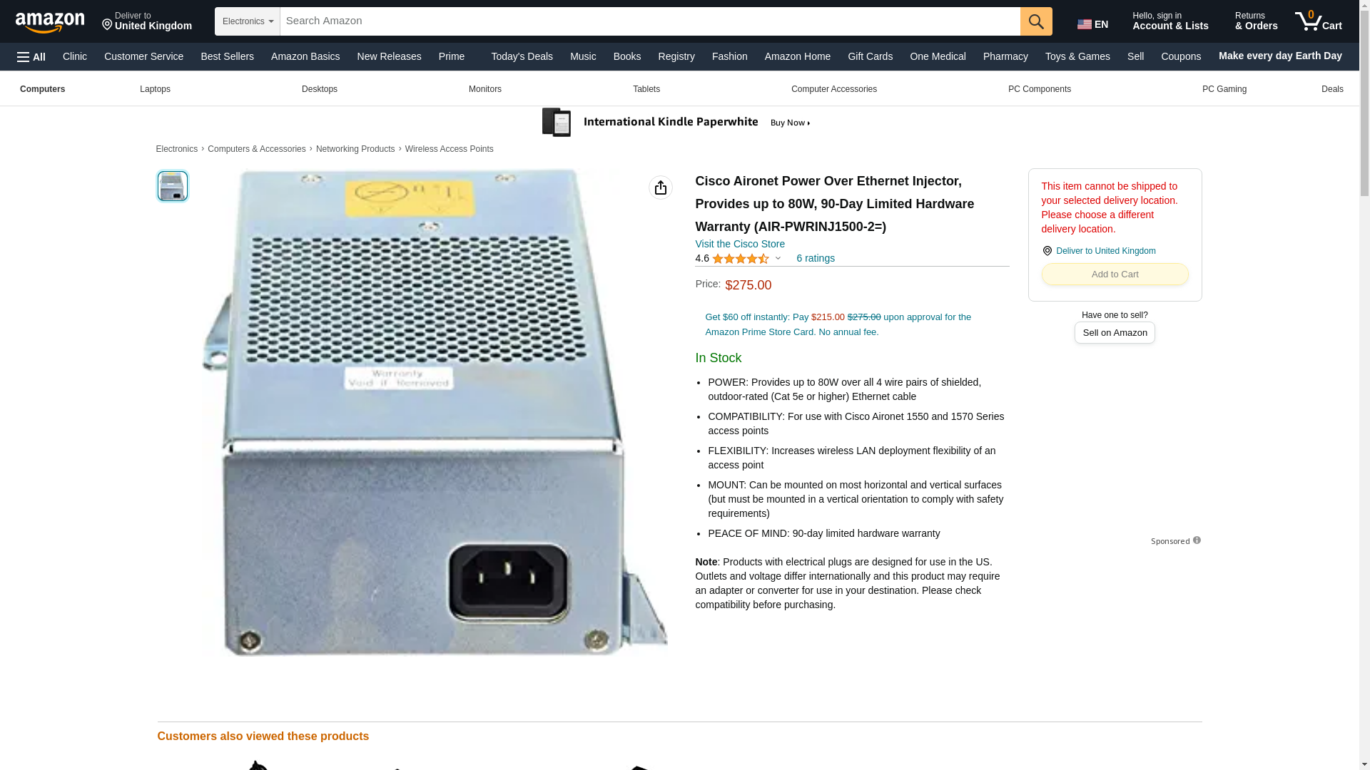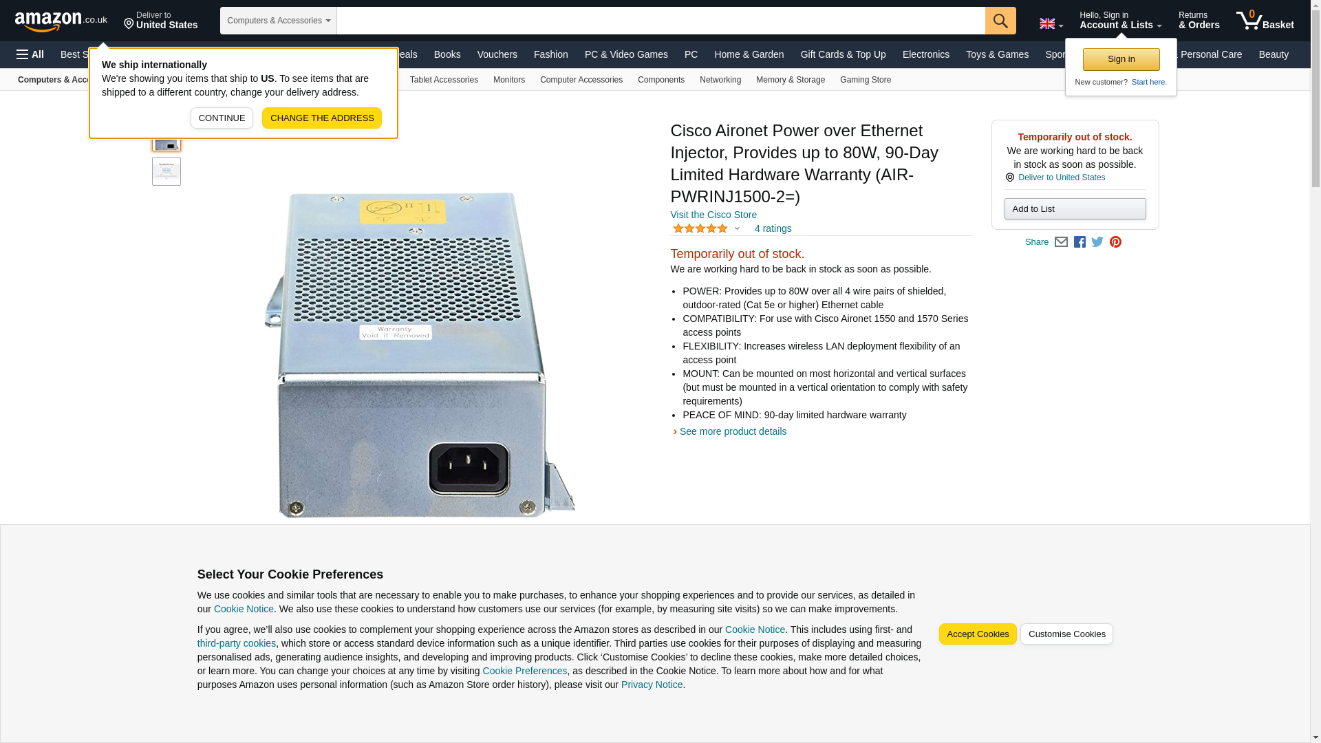 | Feature | MPN: AIR-PWRINJ1500-2= |