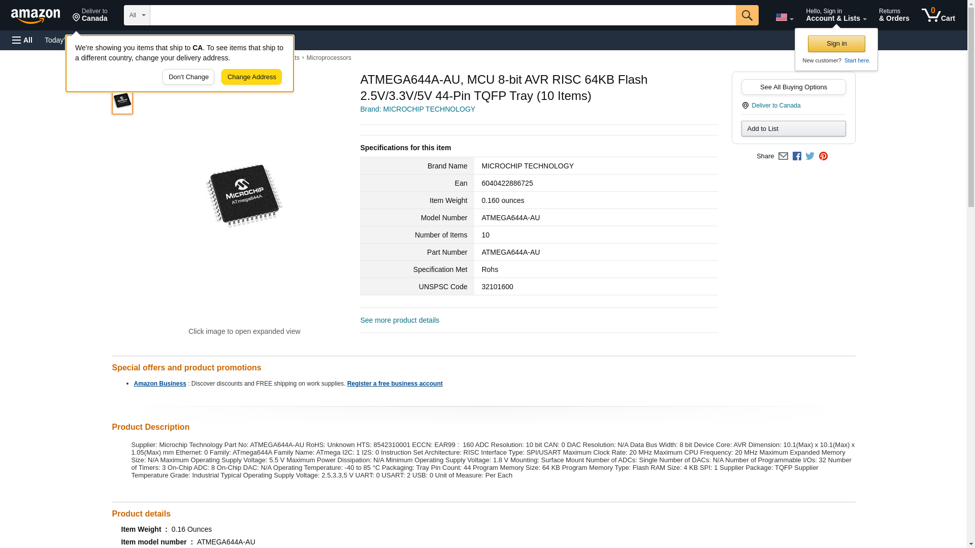 | ATMEGA644A-AU | 1 | 1 | 1 @ $5.80, 10 @ $5.39, 25 @ $5.02, 100 @ $4.83 | ||