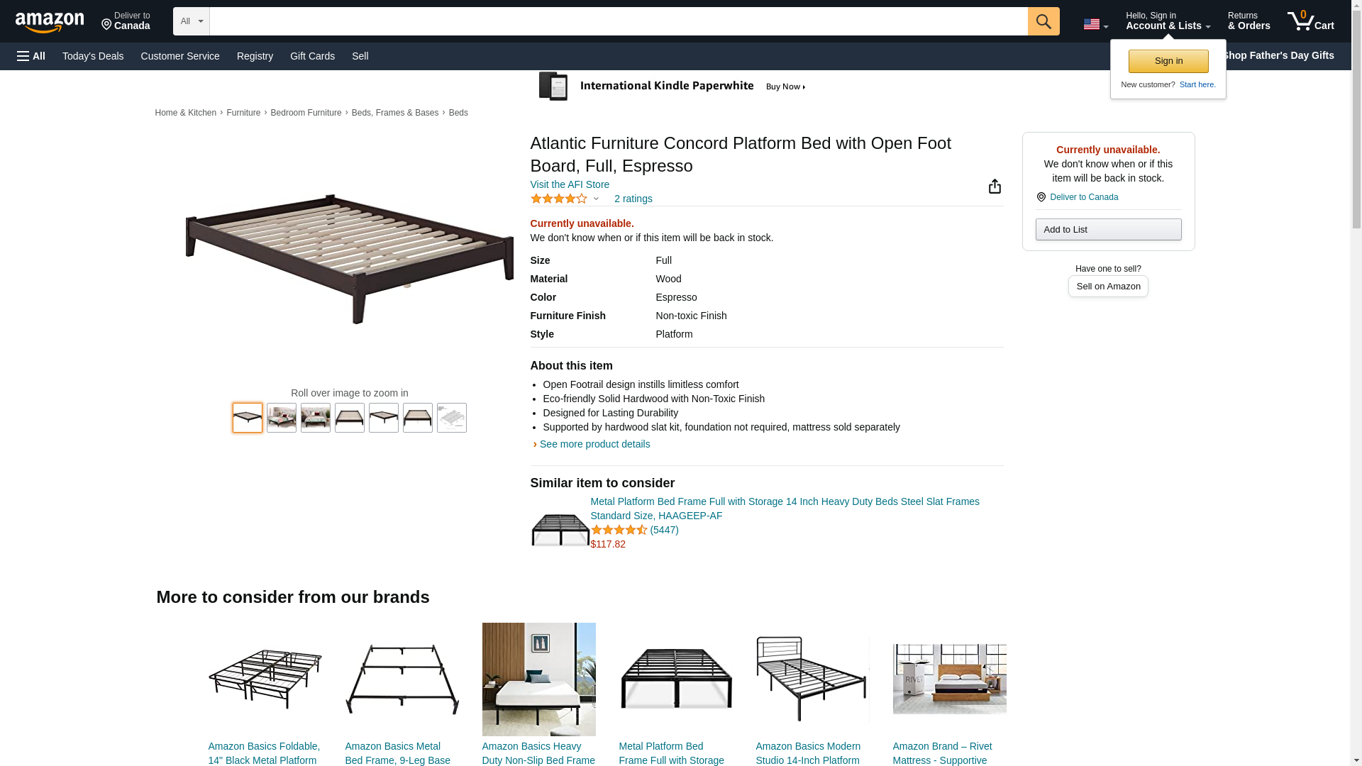 Atlantic Furniture Concord Platform Bed with Open Foot Board, Full, Espresso