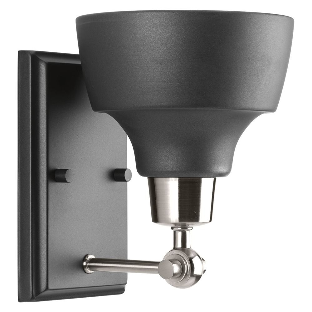 Progress Lighting Bramlett Collection 1-Light Graphite Metal Shade Coastal Bath Vanity Light Brushed Nickel