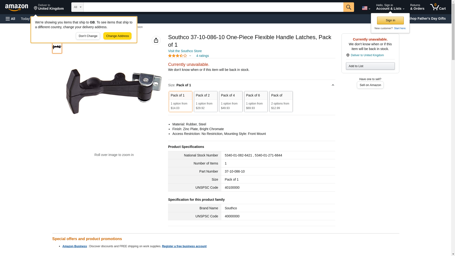 Southco 37-10-086-10 One-Piece Flexible Handle Latches, Pack of 1