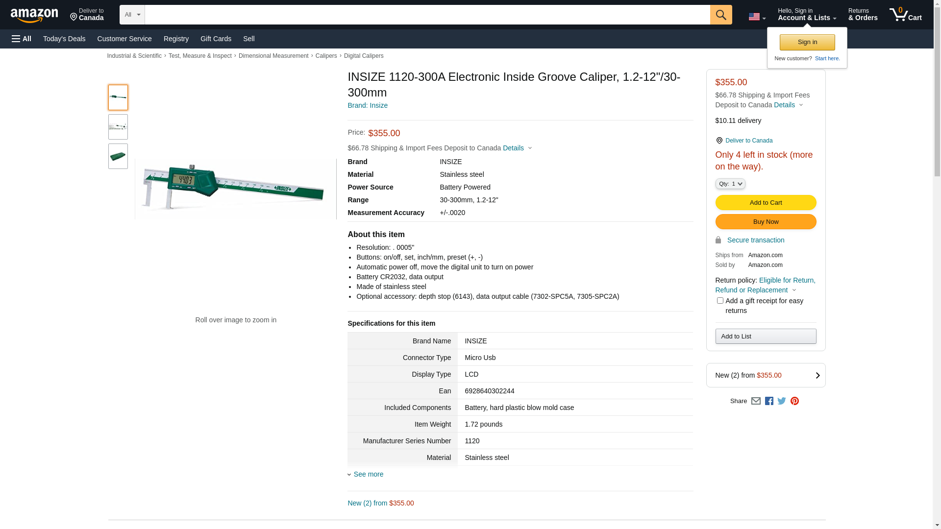 INSIZE 1120-300A Electronic Inside Groove Caliper, 1.2-12"/30-300mm