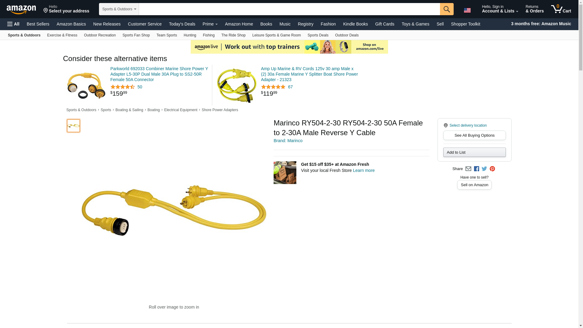 Marinco RY504-2-30 RY504-2-30 50A Female to 2-30A Male Reverse Y Cable