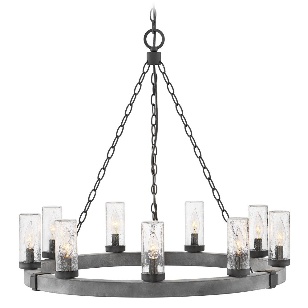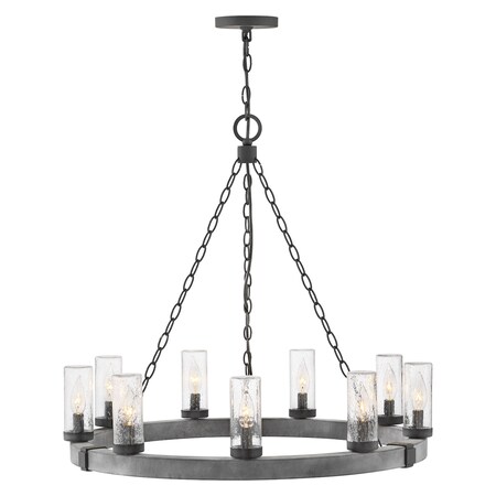 Hinkley Sawyer Collection 30" Nine Light 4W LED Large Outdoor Chandelier, Aged Zinc/Distressed Black Finish with Clear Seedy Glass