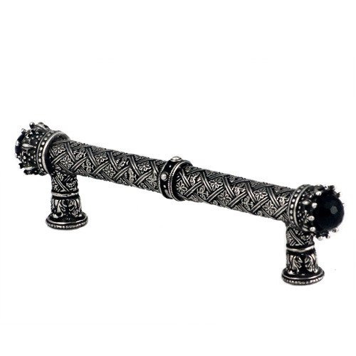 Crowning Glory King George Collection - 6" Centers Pull with Semi-Precious Stones in Antique Brass with Onyx Stone by Carpe Diem Hardware - 6913-3-OX | Knobs 4 Less