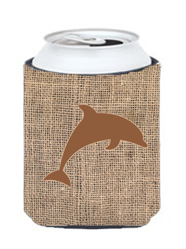 Carolines Treasures BB1025-BL-BN-CC Dolphin Burlap And Brown Can Or Bottle Hugger