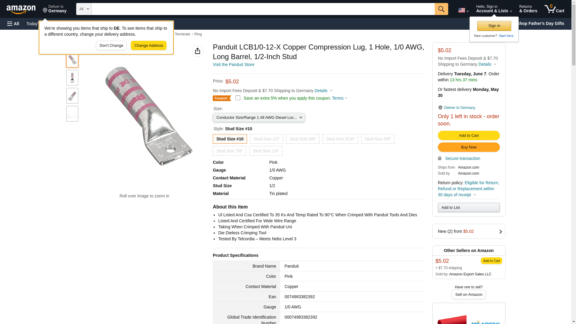 | Airline Hydraulics | PANDUIT LCB1/0-56-X | 1 | 1 | 1 @ $12.67 | |