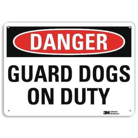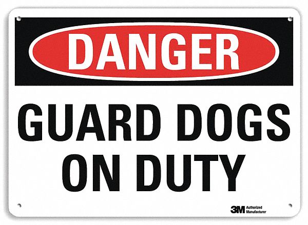 Danger Sign, Vertical Rectangle, Number of Printed Sides 1, English, Sign Format Traditional OSHA, Sign Legend Guard Dogs On Duty, Sign Legend Background Color White, Sign Legend Style Text