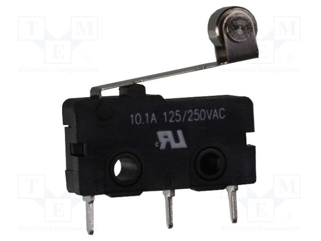 MICRO SW, ROLLER LEVER, SPDT, 10.1A 250V; Microswitch Type:Subminiature; Microswitch Actuator:Roller Lever; Contact Configuration:SPDT; Switch Terminals:Solder; Contact Current Max:10.1A; Contact Voltage DC Nom:30VDC RoHS Compliant: Yes