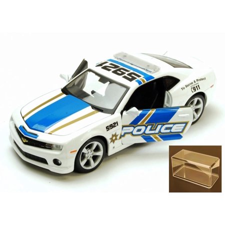 <b>Two Piece Diecast Car & Accessory Package Includes: </b> <ul> <li>2010 Chevrolet Camaro Police, White with Blue & Gold - Showcasts 3408 - 1/24 Scale Diecast Model Toy Car</li> <li>Acrylic Display Case for 1/24 Scale Diecast Model Toy Cars - PP094C</li> </ul> <br /> <br />34208-SHO-WHITE,PP094C