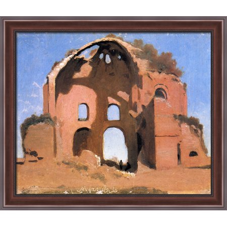 Temple of Minerva Medica, Rome 34x28 Large Walnut Ornate Wood Framed Canvas Art by Jean Baptiste Camille Corot