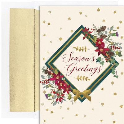 JAM PAPER Christmas Cards & Matching Envelopes Set, 7 6/7" x 5 5/8", Seasons Floral, 18/Pack (526936 | Quill.com