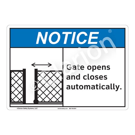 Notice Gate Opens Sign (F1132-)|Weatherable Polyester 14" X 10" Self Adhesive Back|ANSI Signs|Sign for Manufacturing, Medical, Power Stations, Chemical Plant, Fuel Storage, Public Buildings