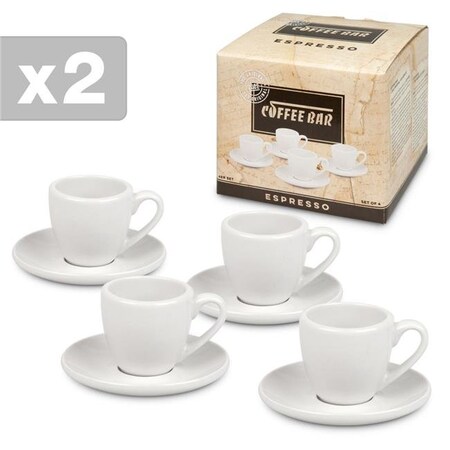 Konitz Two Giftboxed Coffee Bar Espresso Cups and Saucers (Set of 4), 4 Count (Pack of 2), White