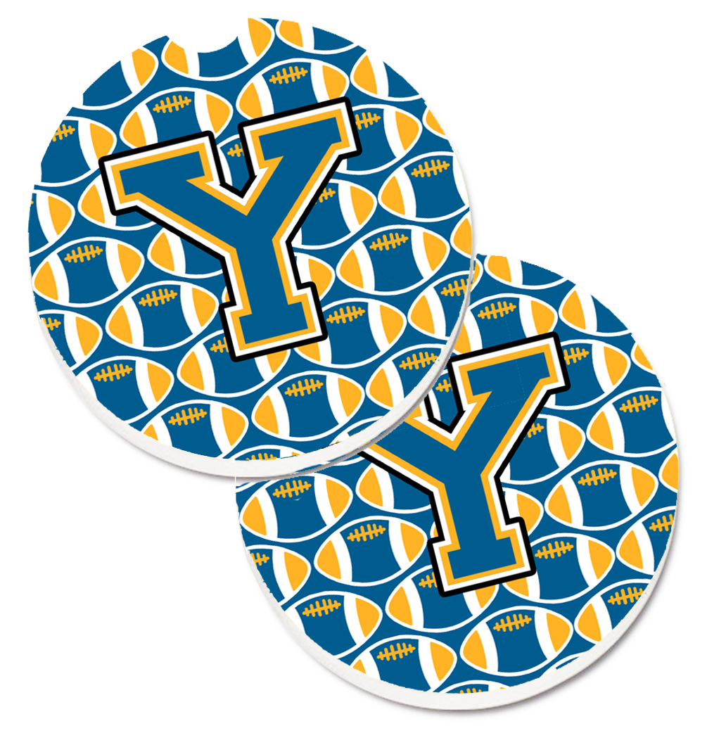 Carolines Treasures CJ1077-YCARC Letter Y Football Blue & Gold Set of 2 Cup Holder Car Coaster