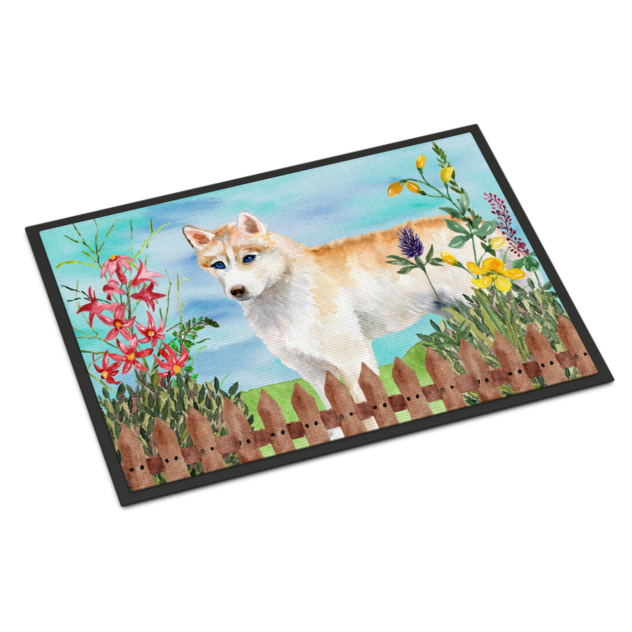 Caroline's Treasures CK1217JMAT Siberian Husky Spring Doormat 24x36 Front Door Mat Indoor Outdoor Rugs for Entryway, Non Slip Washable Low Pile, 24H X 36W
