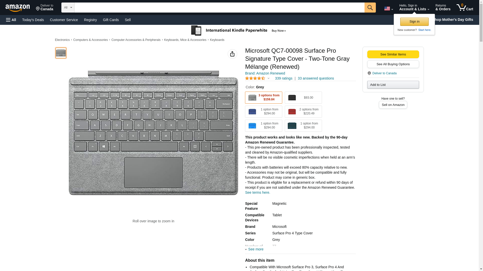 Microsoft GJZ-00006 Factory Recertified Surface Pro-4 Keyboard Type Cover, Gray