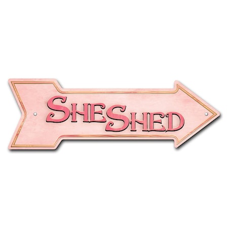 SignMission She Shed Arrow Plastic Sign, 18" Wide