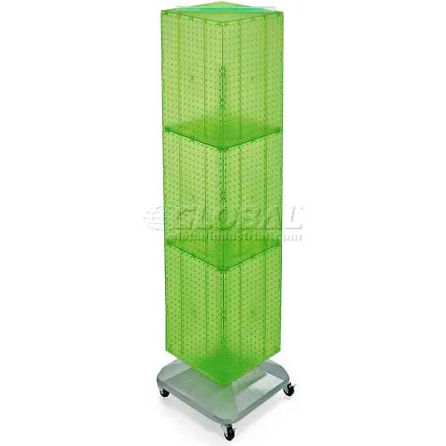Global Approved 701465-GRE 4-Sided Interlocking Pegboard Floor Display W/ Wheels, 14" x 60", Green