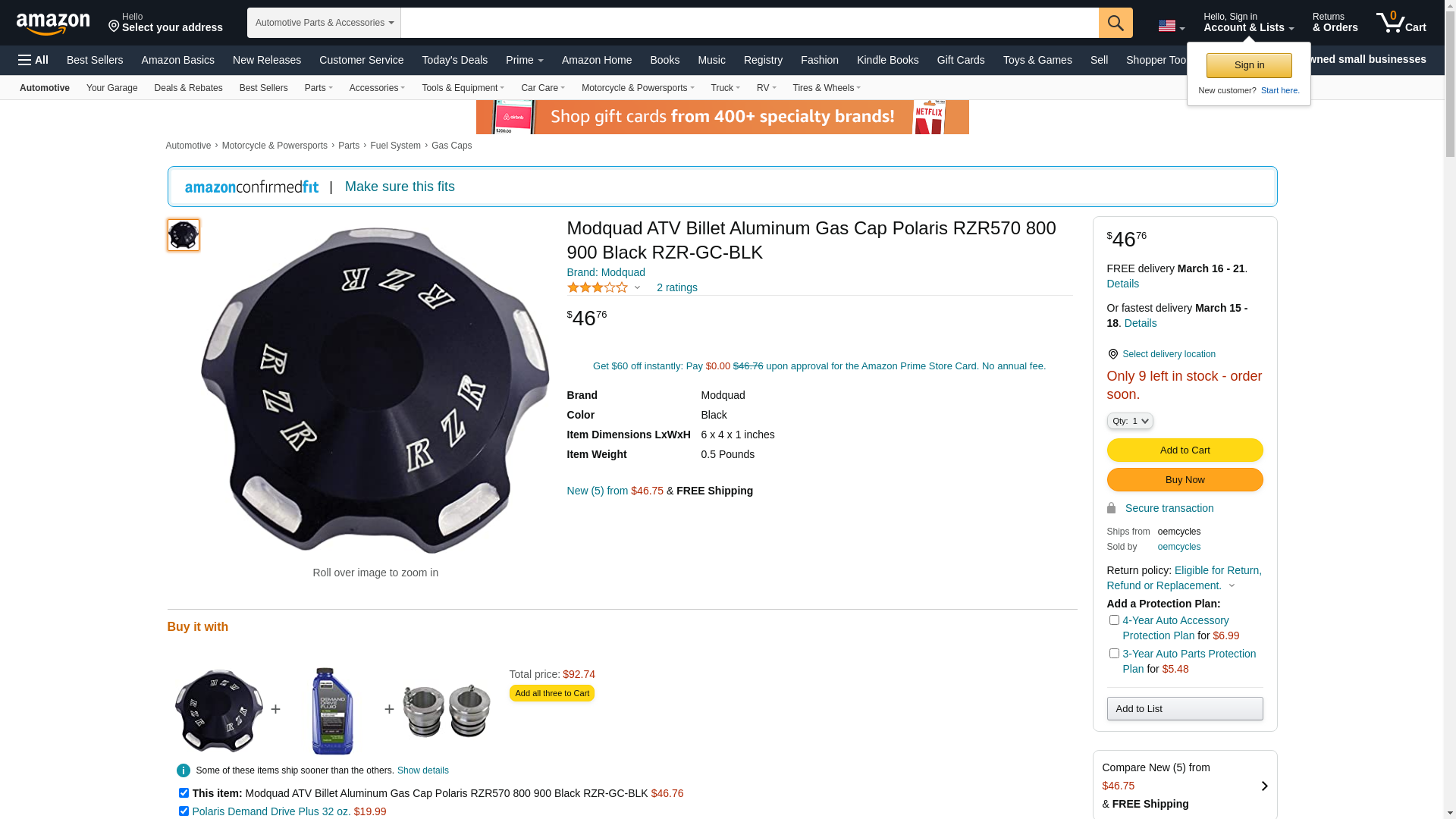 ![]() socalpowersports.com | RZR-GC-BLK | 1 | 1 | 1 @ $46.91 | |