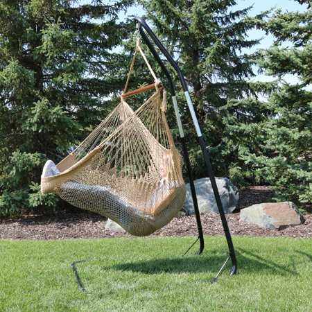 Sunnydaze Caribbean-Style Hanging Rope Hammock Chair Swing with Adjustable Stand - 300-Pound Capacity - Tan