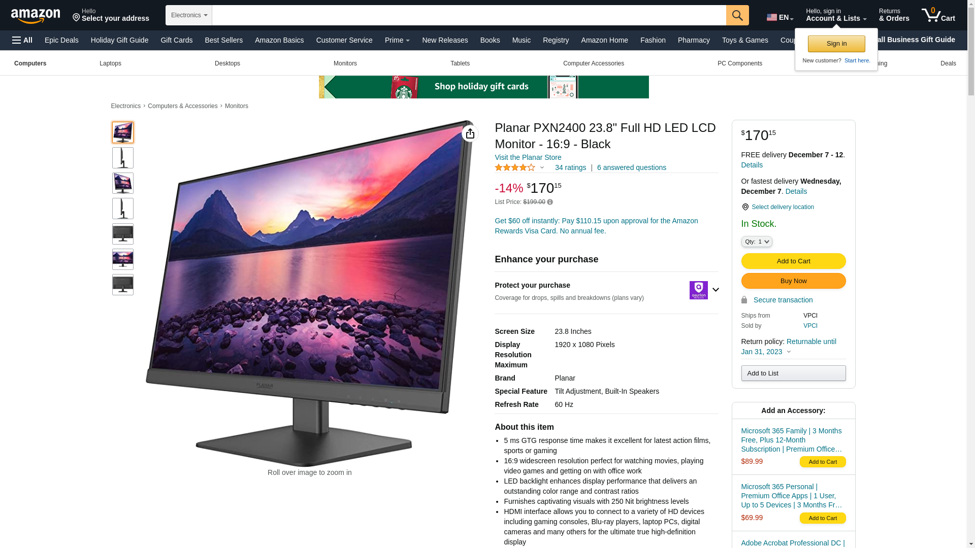 Planar PXN2400 23.8" Full HD LED LCD Monitor - 16:9 - Black