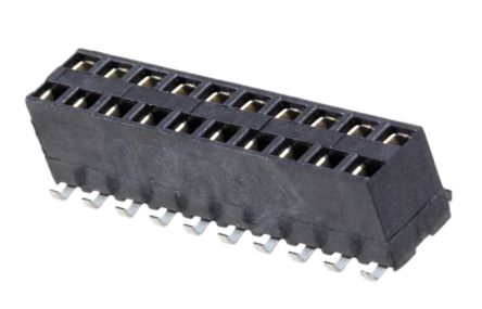 | Feature | <b>Price For:</b> Pack of 100 <b>Manufacturer</b>: TE Connectivity <b>Product Category</b>: Headers & Wire Housings <b>RoHS</b>: <b>Product</b>: Headers <b>Type</b>: Socket Assembly <b>Number of Positions</b>: 20 Position <b>Pitch</b>: 2.54 mm <b>Number of Rows</b>: 2 Row <b>Mounting Style</b>: - <b>Termination Style</b>: SMD <b>Mounting Angle</b>: Vertical <b>Contact Plating</b>: Gold <b>Brand</b>: TE Connectivity / AMP <b>Contact Material</b>: Copper Tin |