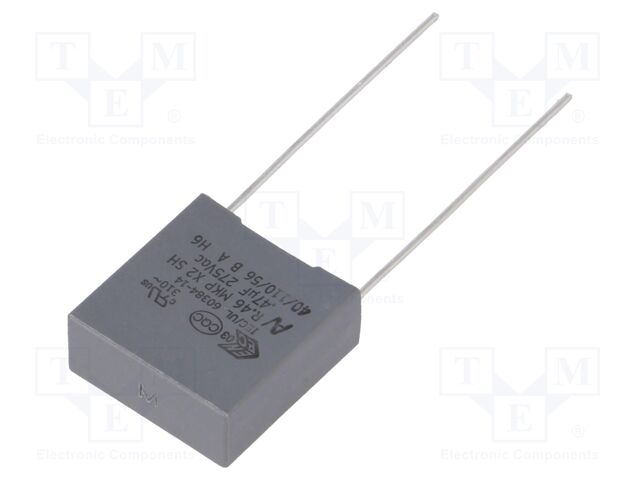 R46KI347040P3M, Cap Film Suppression X2 0.47uF 560VDC/275VAC PP 20% (18 X 7.5 X 18.5mm) Radial Plastic Rectangular Can 15mm 110°C Bulk (50 Items)