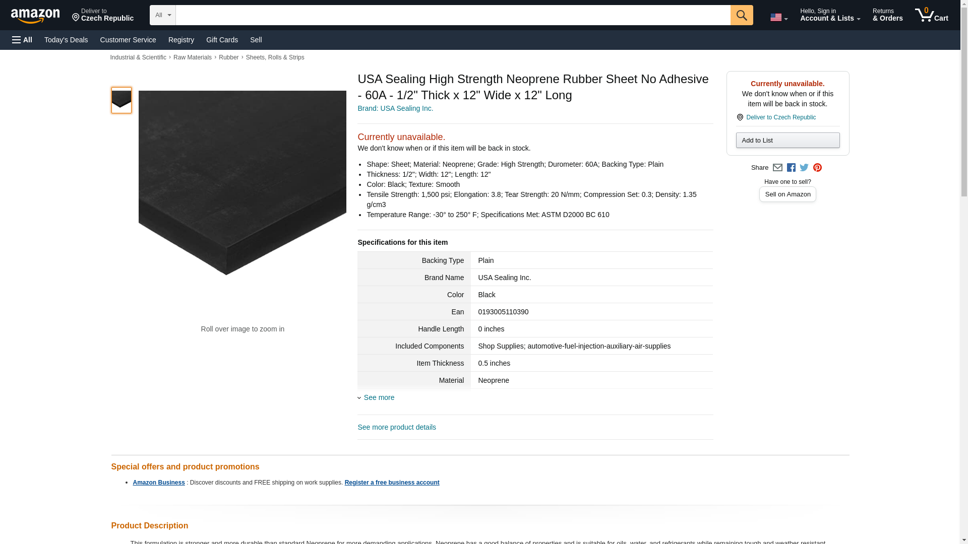 - Shape: Sheet; Material: Neoprene; Grade: High Strength; Durometer: 60A; Backing Type: Plain