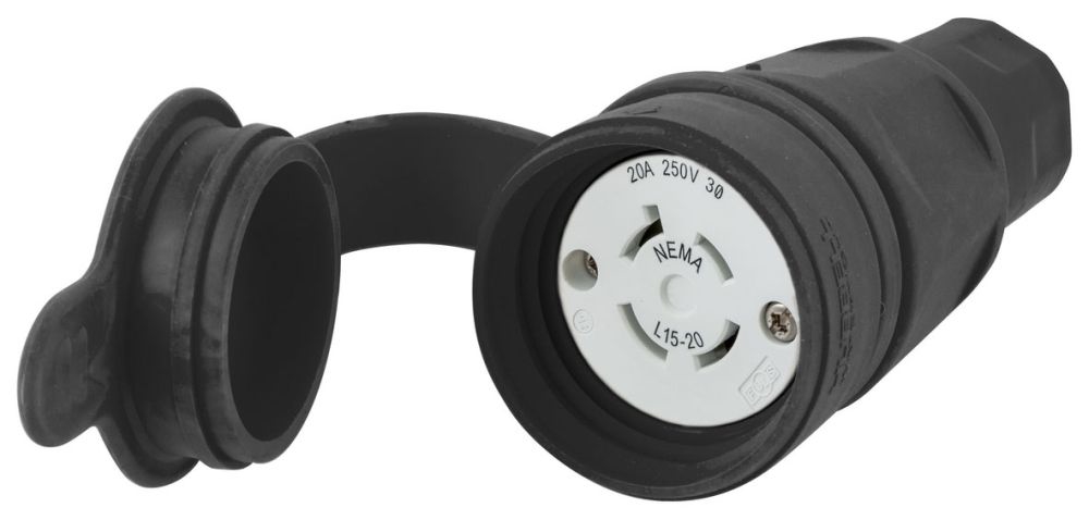 - The product type is Watertight Devices, Twist-Lock Connector, 20A, 3 Phase 250V AC, 3 Pole, 4 Wire, Thermoplastic elastomer, NEMA L15-20R, Black