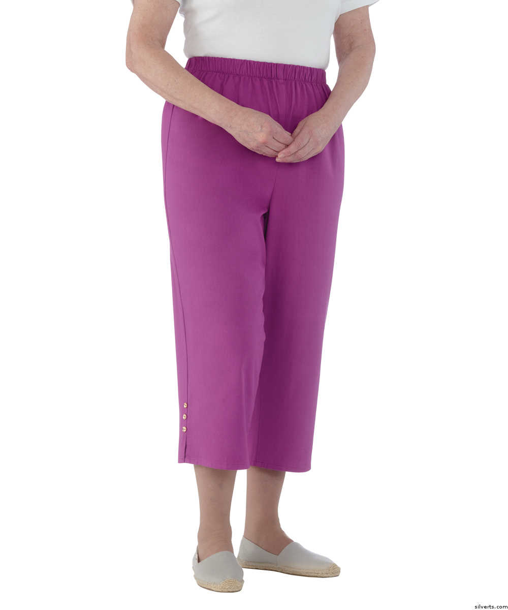 Silverts 234300704 Women Adaptive Cotton & Wheelchair Capri Pants - Large - Berry