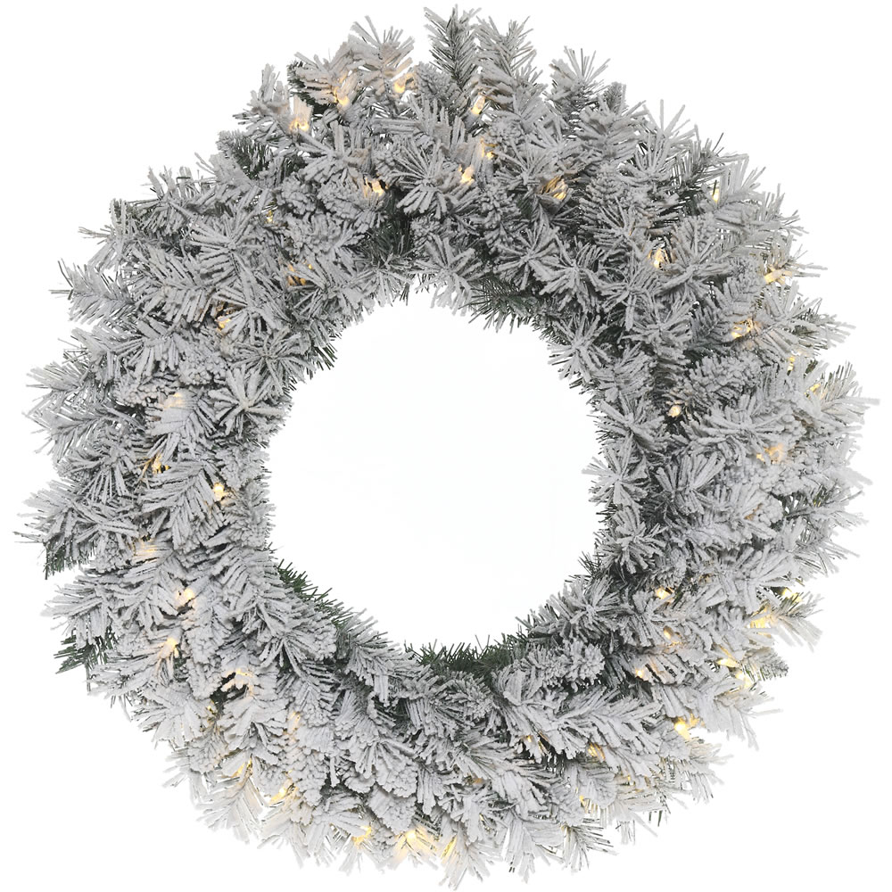 Vickerman B177231LED 30 in. Flocked Vail Green Wreath with 70 Warm White Dura Light