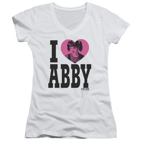 Trevco Ncis-I Heart Abby - Junior V-Neck Tee - White, 2X